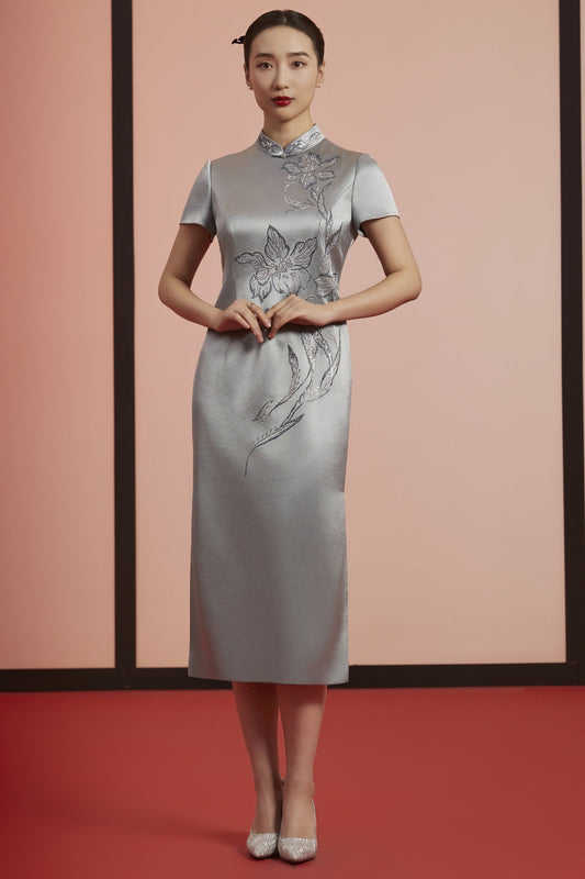 Elegant Midnight Blossoms Qipao