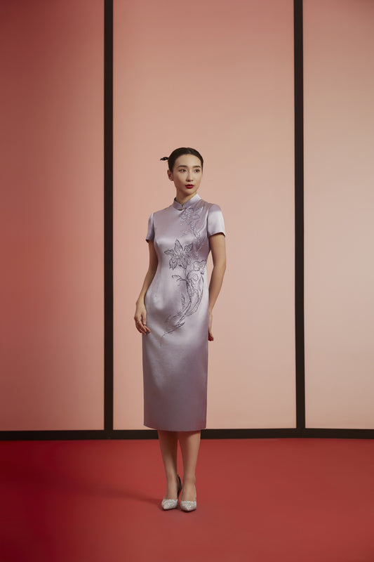 Elegant Blossom: Vintage-Inspired Qipao-Taro